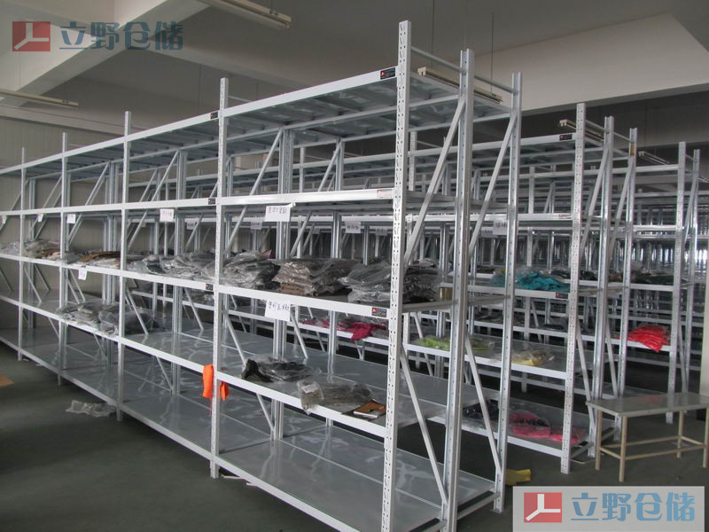 服裝貨架-疊裝架,顧名思義是擺放疊裝類服裝的貨架。可將同類、同季、同系列產品成列在同一區域內。方便區域化分類管理。疊裝貨架中采用隔網或隔板封閉在貨架的側面和背靠背之間,避免貨架上產品的掉落,并且和分隔板一樣,也能避免貨物之間的串位問題,是眾多服裝類電商的首選產品。