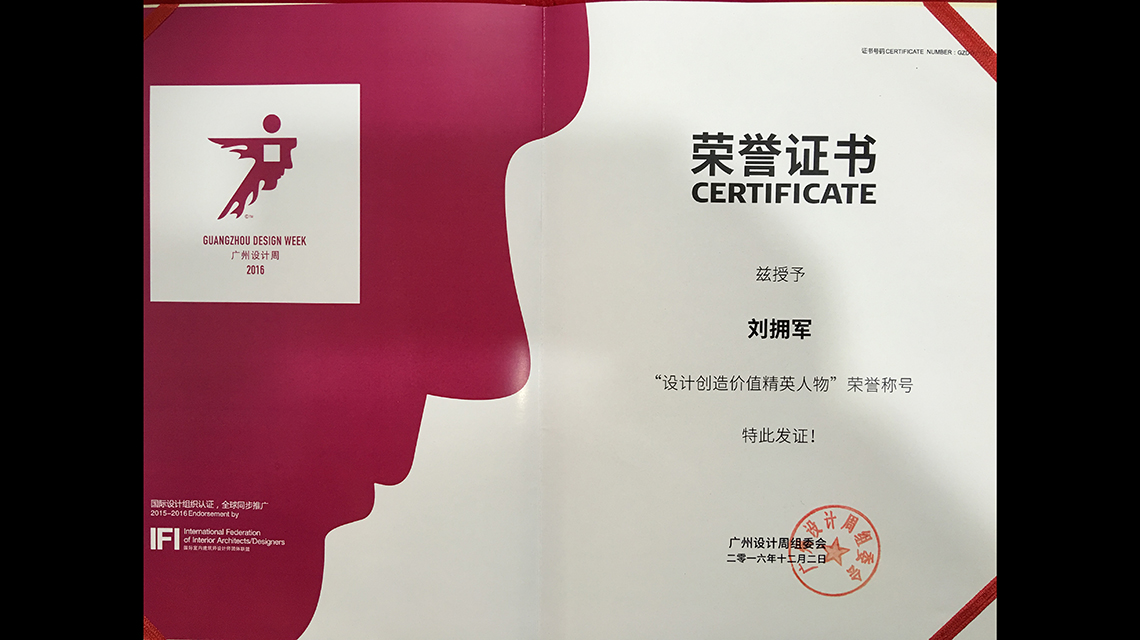 廣州設(shè)計周:我司總經(jīng)理兼首席設(shè)計總監(jiān)劉擁軍在廣州設(shè)計周上發(fā)表了《設(shè)計驅(qū)動生產(chǎn)力》的精彩演講,在此期間設(shè)計總監(jiān)劉擁軍、吳新奮、劉作平三人一并榮獲【設(shè)計創(chuàng)造價值精英人物】榮譽(yù)稱號!